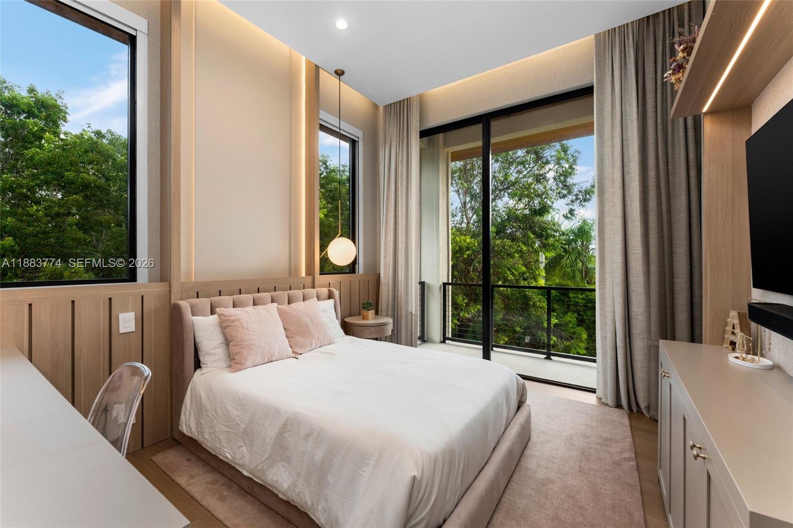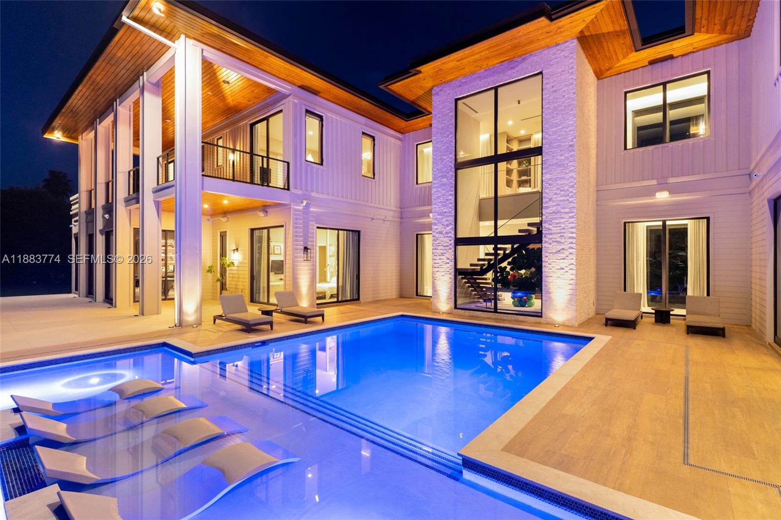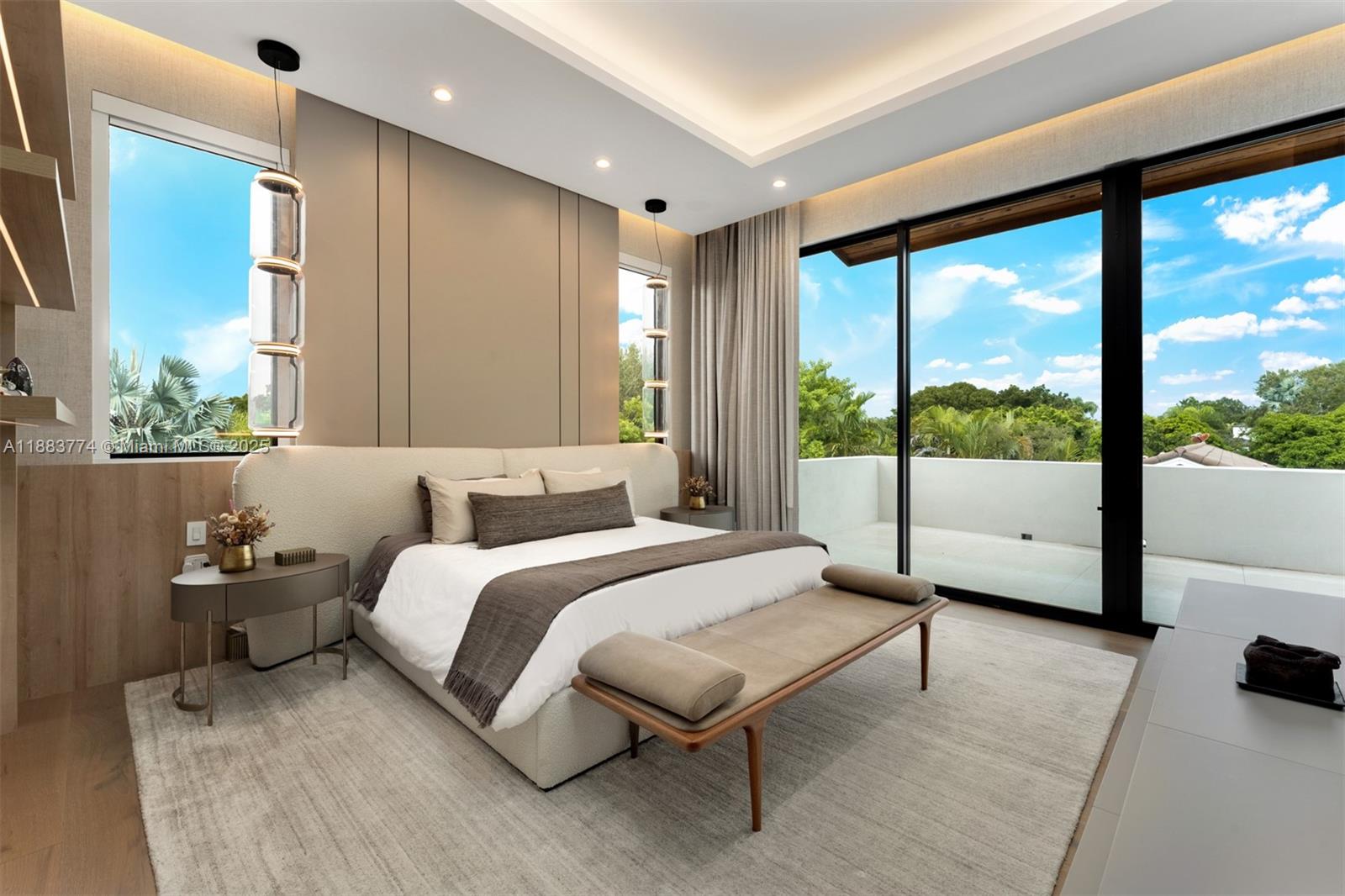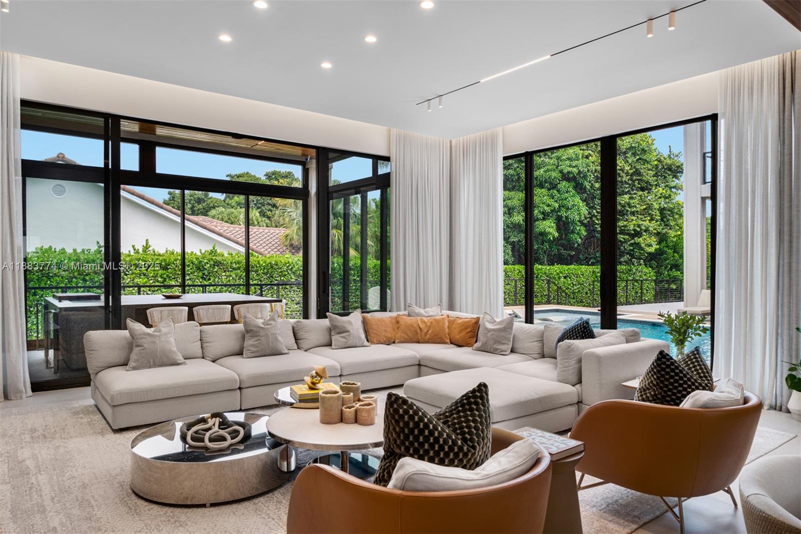 A timeless blend of elegance and comfort, this exceptional two-story residence offers 7 bedrooms, 7 full baths, and 1 half bath, thoughtfully curated for refined living. Soaring volume ceilings, impact glass, and bespoke built-ins elevate each space with understated sophistication. The gourmet kitchen showcases custom cabinetry, Wolf appliances, Sub-Zero refrigeration, and a Sub-Zero wine cooler, seamlessly flowing into the wet bar and living areas. A glass-enclosed porch with a summer kitchen featuring a pizza oven invites effortless indoor-outdoor entertaining. Additional highlights include a club room, media room, and the potential for a backyard pickleball court with available renderings.