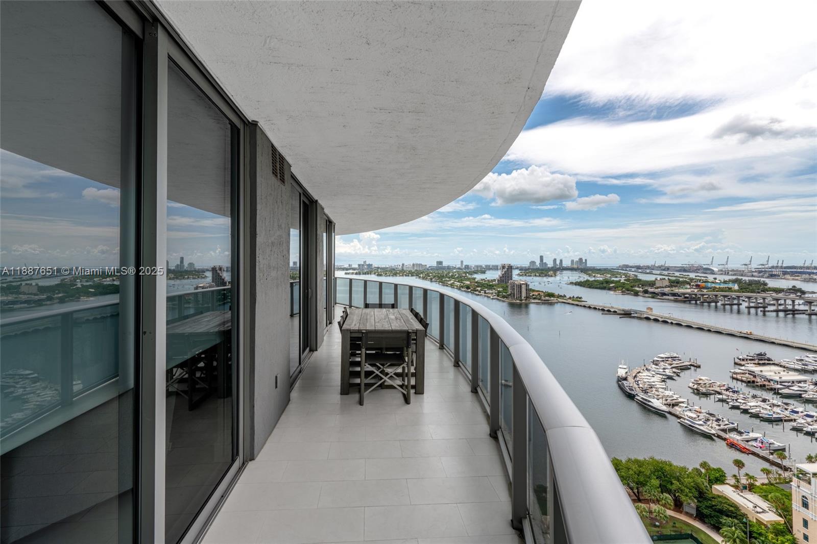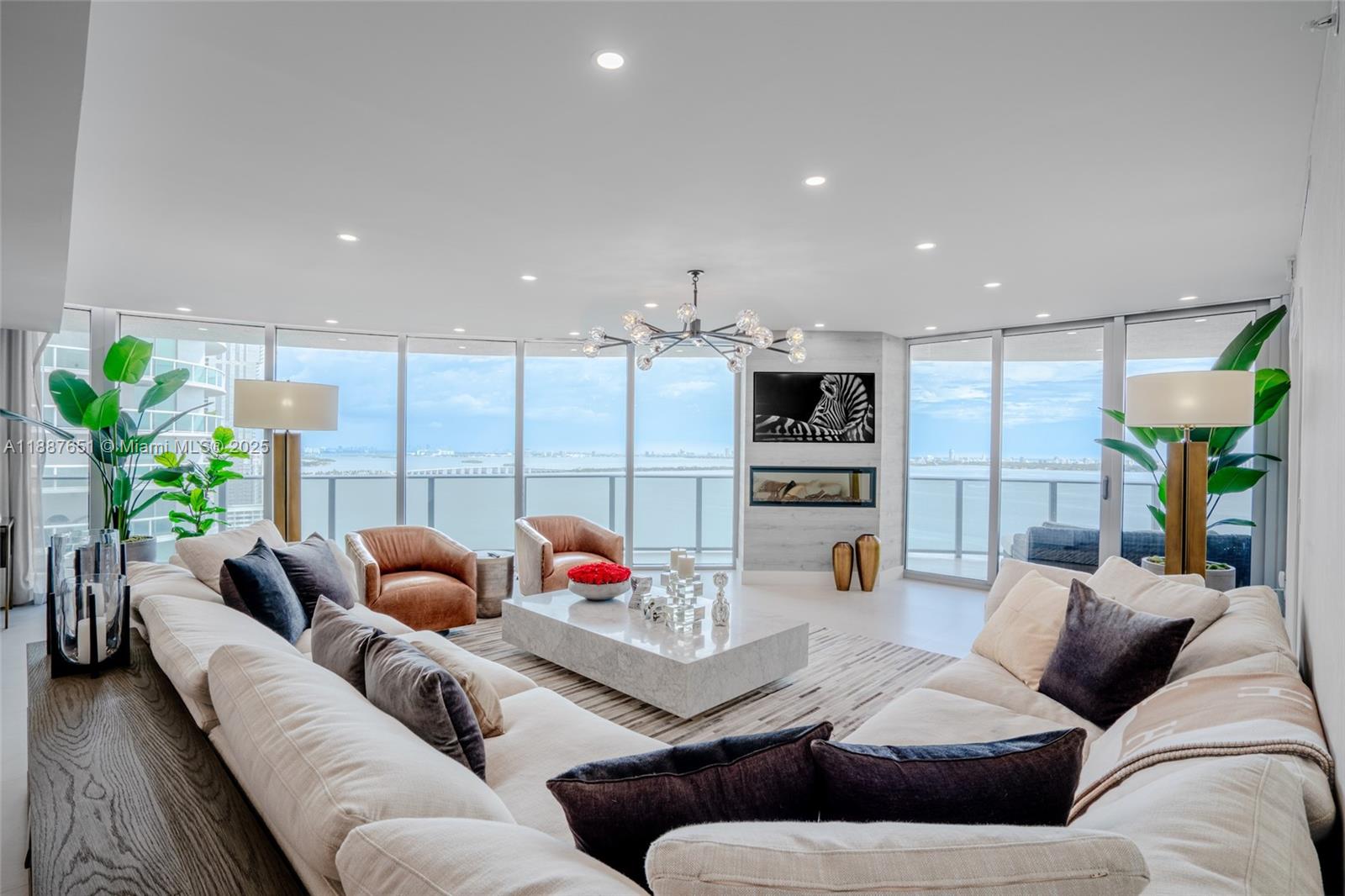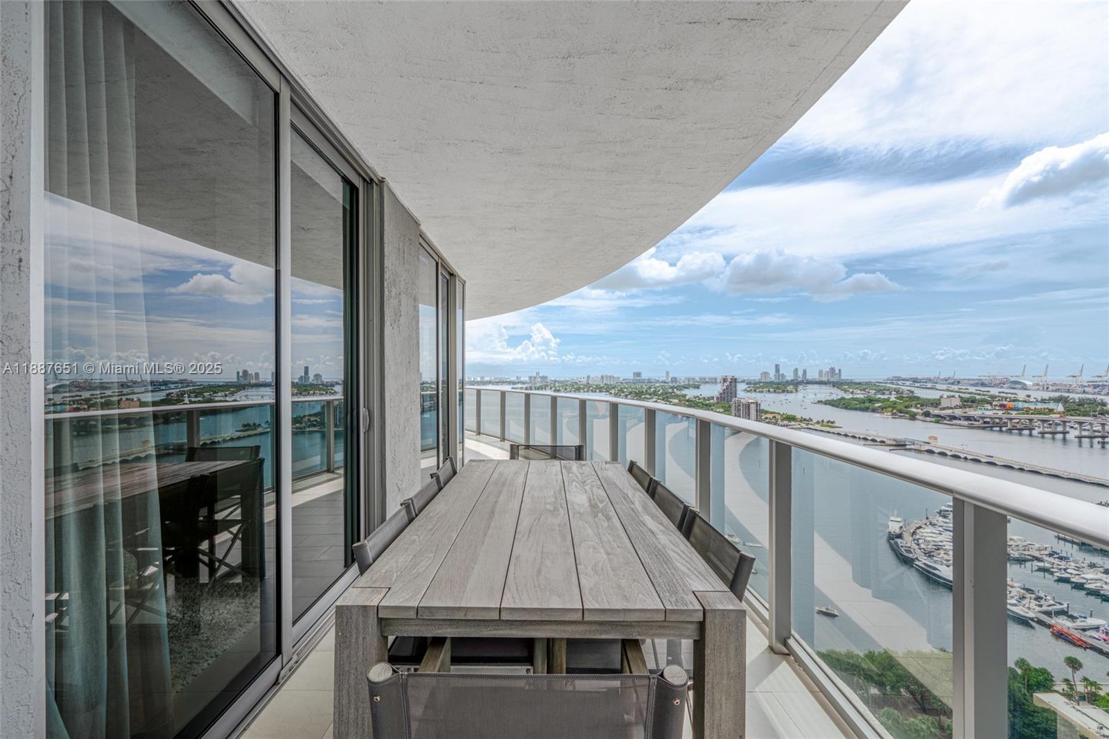 Experience an extraordinary "mansion in the sky" at Aria on the Bay. This rare double residence, originally 6 beds/6 baths, has been masterfully reimagined into 4 grand bedrooms, 5 spa-like baths, a state-of-the-art media room, elegant office, and 2 expansive living areas designed for entertaining. Encompassing nearly 6,000 sq. ft., including a spectacular 1,200+ sqft balcony with 180deg views, features 4 parking spaces and private elevator entry. Floor-to-ceiling glass with panoramas of Biscayne Bay, South Beach, and the Atlantic. Indulge in world-class amenities two resort-style pools, a modern fitness center, spa, theater, lounge, and more. Positioned just steps from Margaret Pace Park, near premier marinas, Wynwood, and the Design District, with the airport and beaches only minutes away.