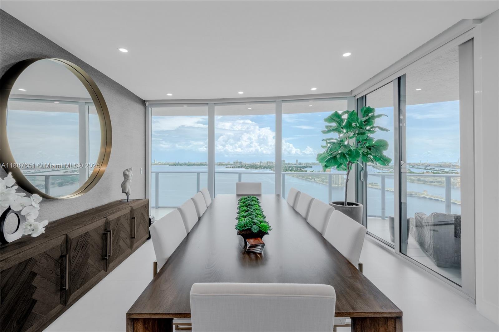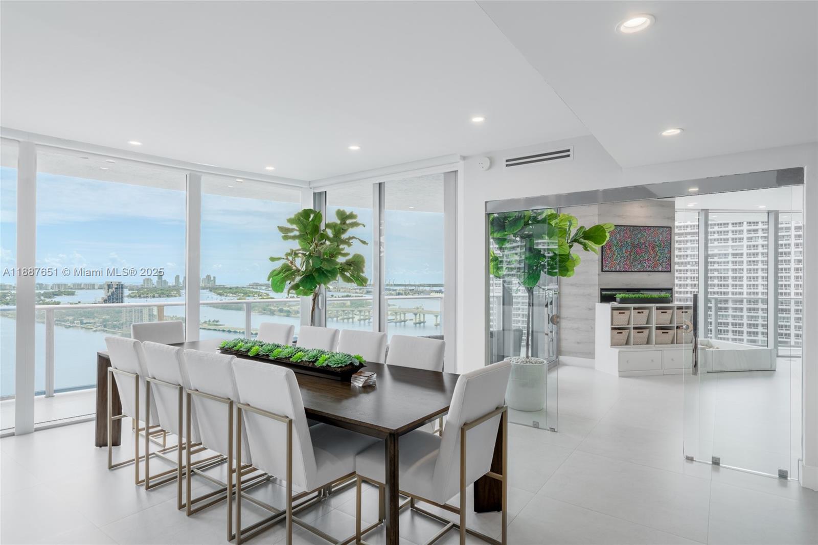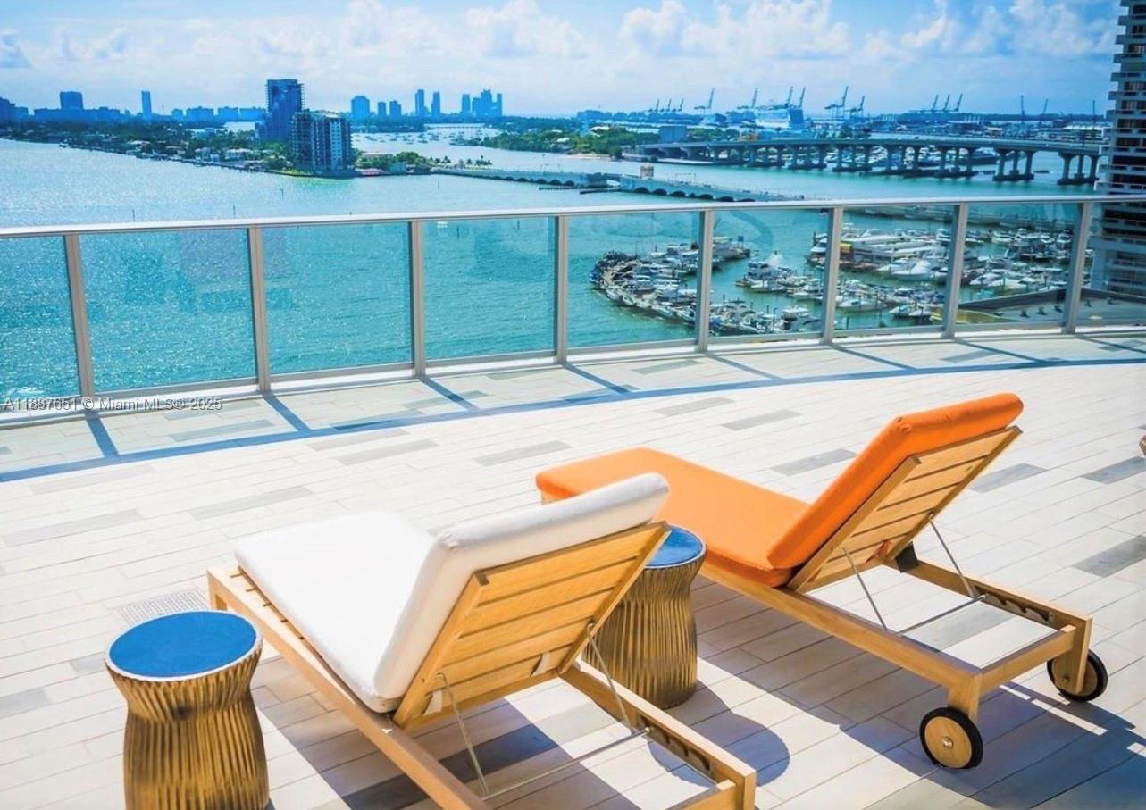Experience an extraordinary "mansion in the sky" at Aria on the Bay. This rare double residence, originally 6 beds/6 baths, has been masterfully reimagined into 4 grand bedrooms, 5 spa-like baths, a state-of-the-art media room, elegant office, and 2 expansive living areas designed for entertaining. Encompassing nearly 6,000 sq. ft., including a spectacular 1,200+ sqft balcony with 180deg views, features 4 parking spaces and private elevator entry. Floor-to-ceiling glass with panoramas of Biscayne Bay, South Beach, and the Atlantic. Indulge in world-class amenities two resort-style pools, a modern fitness center, spa, theater, lounge, and more. Positioned just steps from Margaret Pace Park, near premier marinas, Wynwood, and the Design District, with the airport and beaches only minutes away.