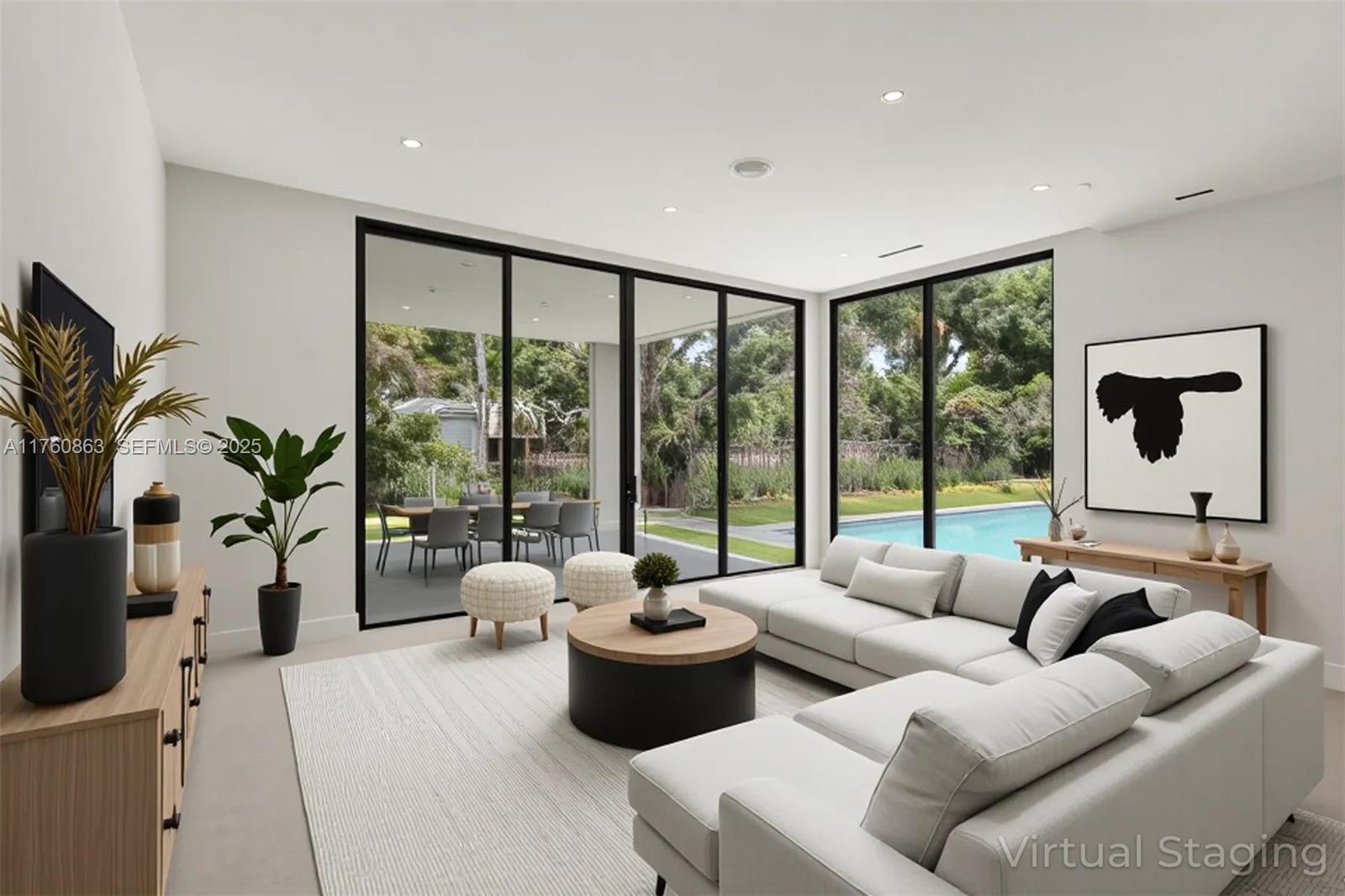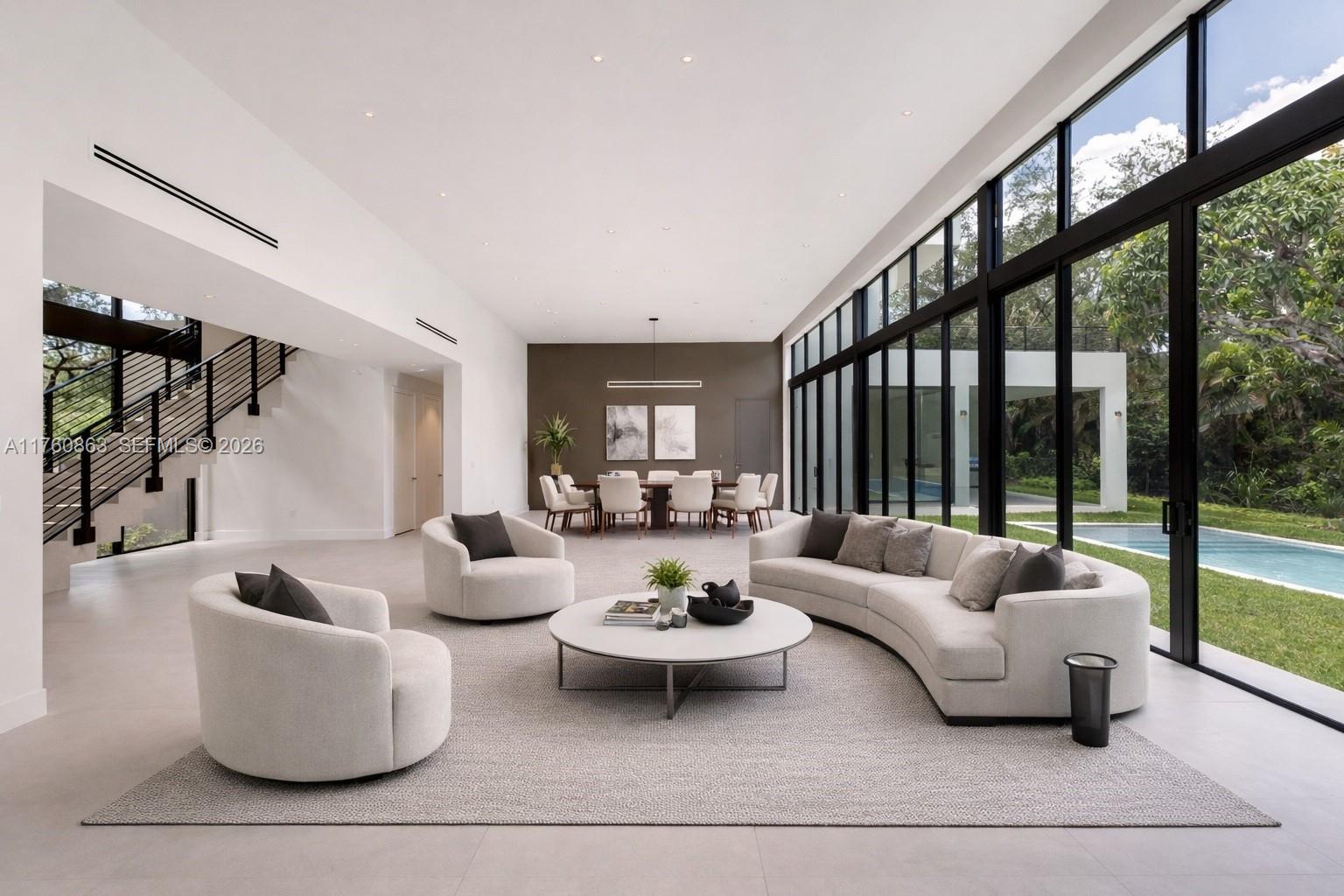 Step into this stunning residence on an oversized lot where elegance meets modern design. A grand entrance with solid core doors leads to Pedini cabinetry, porcelain countertops, and a chef's kitchen with Miele appliances. The spacious great room features high ceilings and large impact-resistant doors and windows, flooding the home with natural light and showcasing the outdoor retreat with two covered terraces and pool. Upstairs offers three en-suite bedrooms, a secondary laundry, and a luxurious primary suite with private terrace, oversized closet, and spa-like bath. Closets and vanities by Pedini Miami. Elevator-ready and future-ready for a smart home system. Move-in ready with CO in hand.