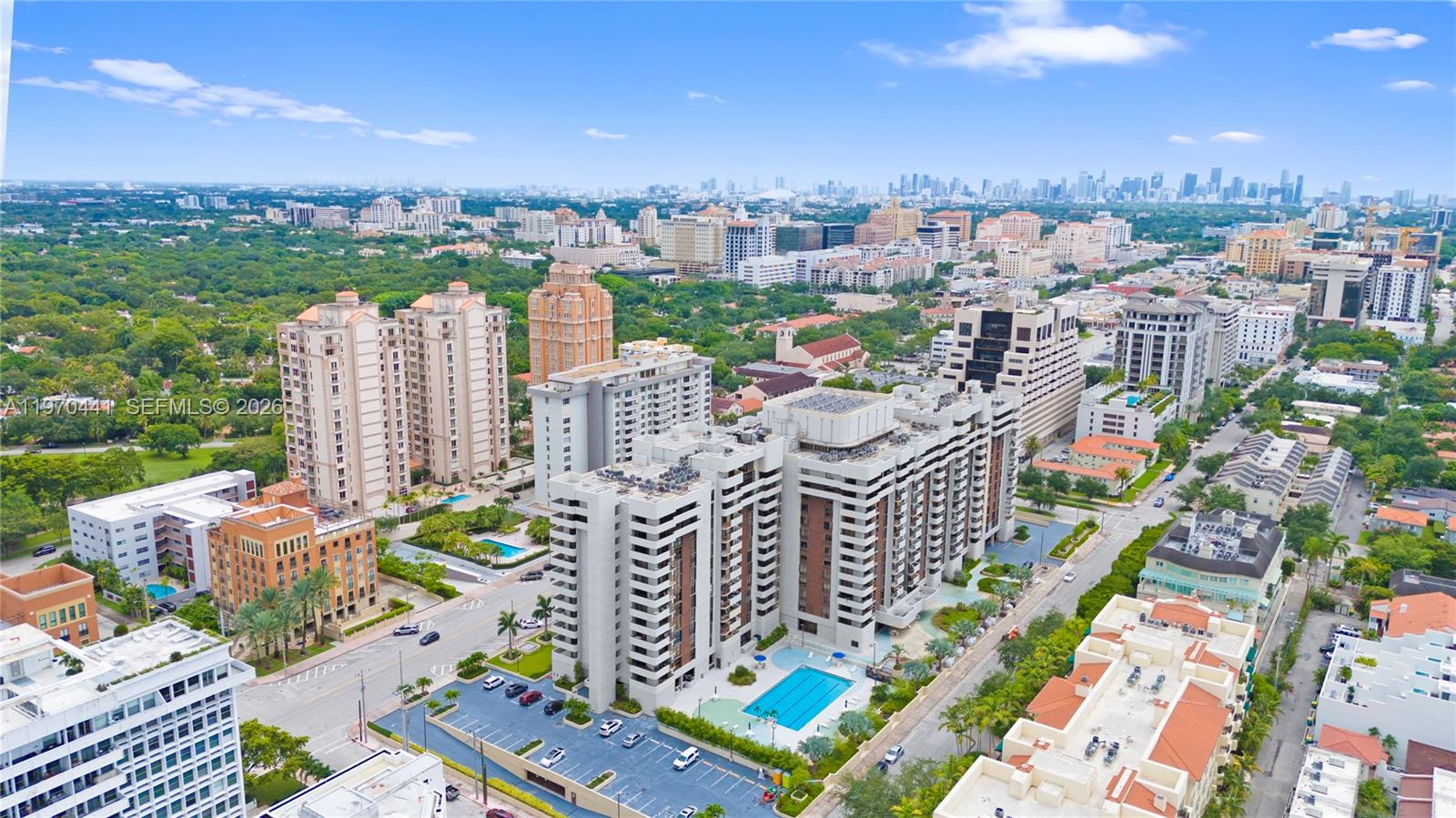 A FULLY FURNISHED midcentury- design inspired turnkey 2BD/2.5BA residence at the coveted Biltmore II Condominium, steps from the world-class dining, shopping & cultural experiences of Miracle Mile in Coral Gables. The home showcases an updated European-style kitchen featuring Bosch cooktop & dishwasher, NEW LG French-door refrigerator, custom hood, & bespoke built-ins perfectly blending function with refined design. A Miele in-unit washer/dryer adds everyday convenience. Enjoy peace of mind with NEW 2025 impact windows & doors. The spacious primary suite is a private retreat, complete with plantation shutters, blackout shades, spa-inspired bath, TOTO Neorest smart toilet, & a generous walk-in closet. The south-facing balcony offers tranquil pool views and sweeping skyline backdrop toward the iconic Biltmore Hotel. Residents enjoy a full-service lifestyle with 24-hour doorman, concierge, fitness center, & inviting social spaces creating a true sanctuary where every return home feels like an escape to your own private resort in the heart of Coral Gables.