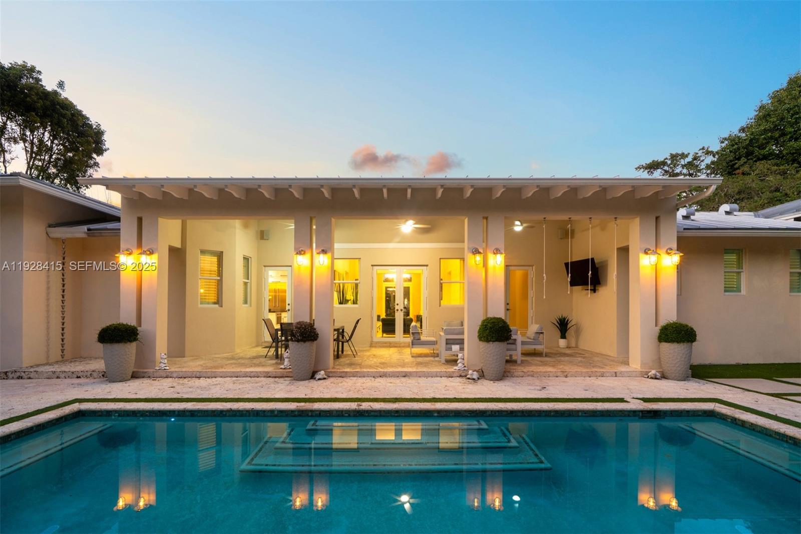 Gorgeous custom-built one-story estate tucked within a private gated cul-de-sac of just four residences in South Miami. Inspired by timeless Bahamian design, this impeccably crafted home welcomes you through an elegant foyer into expansive living spaces filled with natural light and tranquil garden views. Exceptional finishes are showcased throughout, including a gourmet chef's kitchen with custom cabinetry, Thermador and Sub-Zero appliances, walk-in pantry, and breakfast area that opens seamlessly to a spacious family room. The primary suite is a true retreat, offering a sitting area, generous walk-in closet, and spa-like bath adorned with Cuban tile floors, a floating soaking tub, and glass-enclosed shower. Designed for effortless entertaining, the backyard features a covered terrace, summer kitchen, cabana bath, resort-style pool with waterfall, playground, in-ground trampoline, and basketball court. Additional highlights include a dedicated home theater, impact windows and doors, a metal roof, marble floors, and a two-car garage.